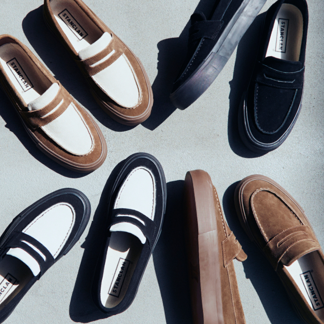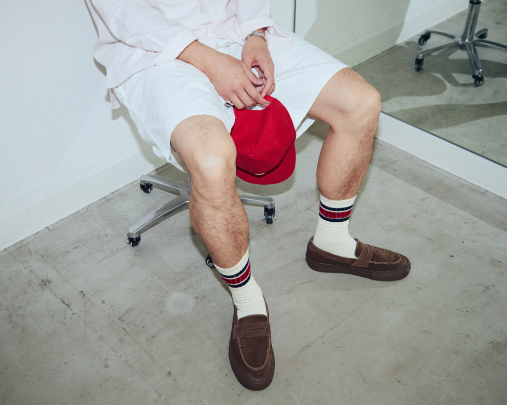 コインローファー型のスリッポンスニーカー。エレガントなローファーの佇まいを残しつつ、バルカナイズド製法ならではのカジュアルさを融合したONにもOFFにも使える万能なスリッポンスニーカー。セットアップの足元にもおススメ。