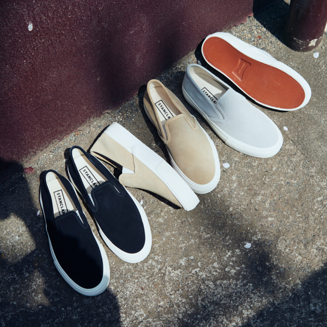 かかとが踏めるスリッポンスニーカー。カジュアルで気軽な着脱性に加えて、素材を引き立てるミニマルなデザインが特徴。上品なカジュアルを追求した大人のためのスリッポン。