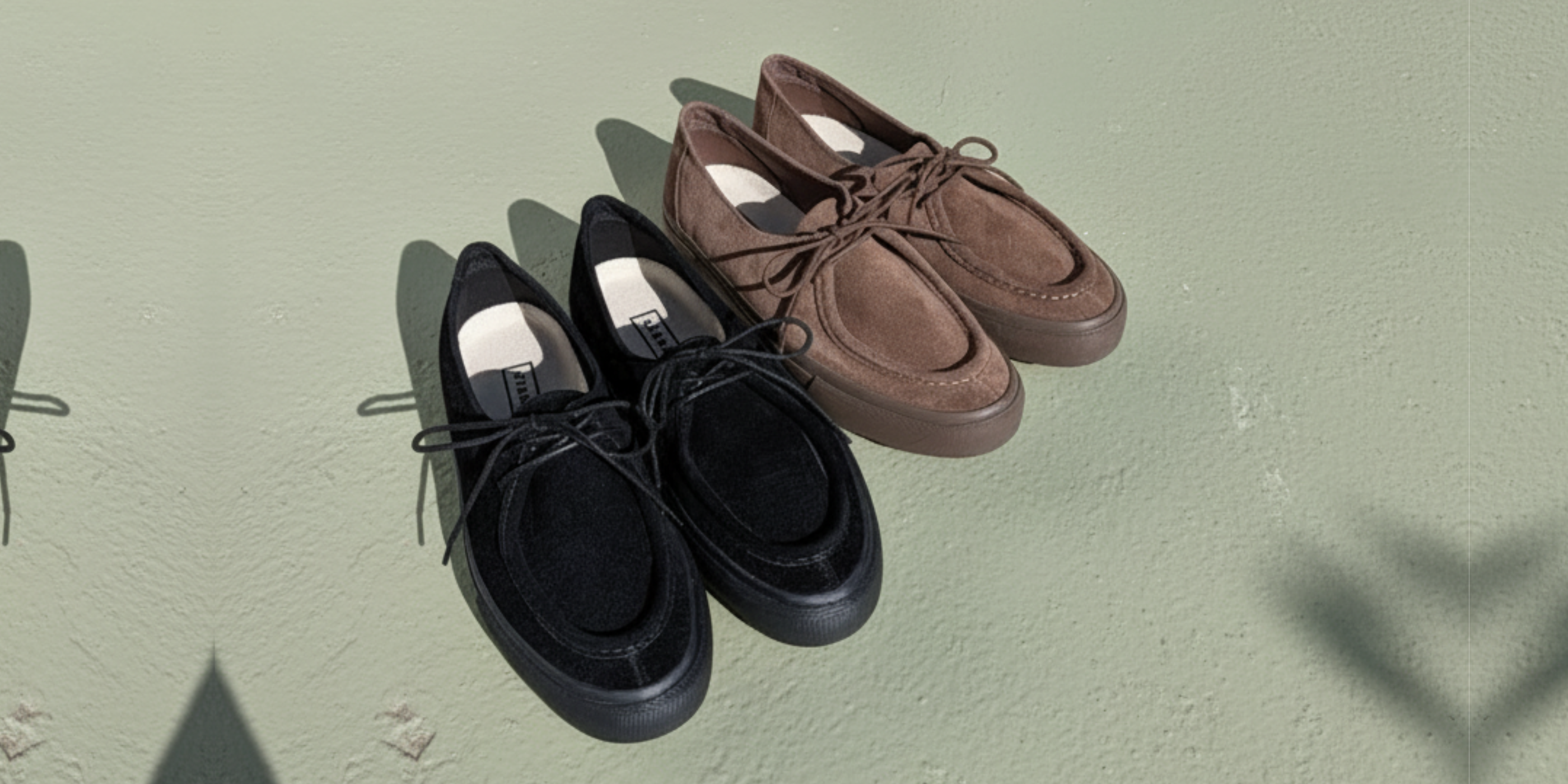 コインローファー型のスリッポンスニーカー。エレガントなローファーの佇まいを残しつつ、バルカナイズド製法ならではのカジュアルさを融合したONにもOFFにも使える万能なスリッポンスニーカー。セットアップの足元にもおススメ。